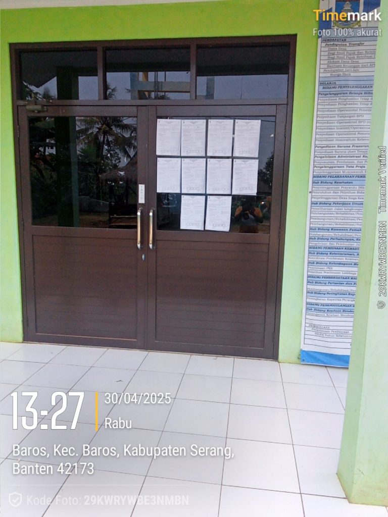 Serang.Suara Rakyat-Id.Kantor Desa Sukamanah Kecamatan Baros Kabupaten Serang Provinsi Banten terlihat kosong tidak ada pelayanan saat jam kerja , Rabu (30/04/2025).