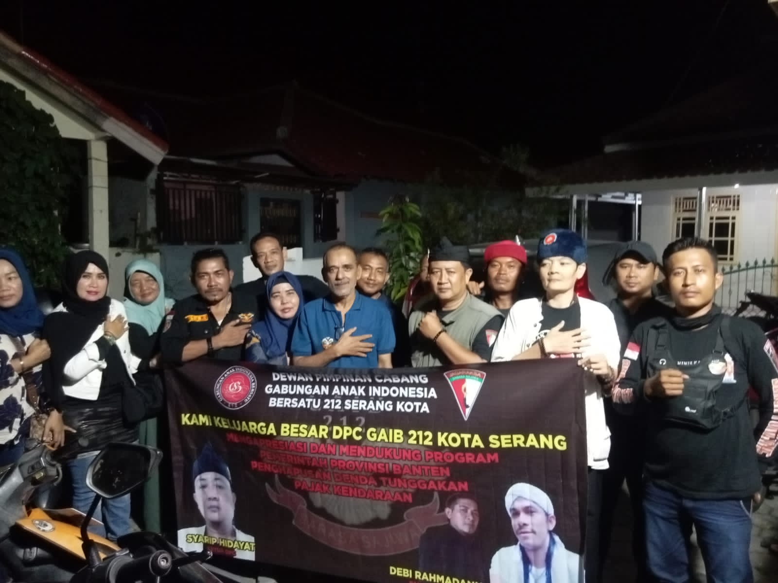 Banten- Suara Rakyat-Id.Dewan pimpinan Cabang (DPC) Gabungan Anak Indonesia Bersatu (GAIB) 212 Kota Serang mengapresiasi Program Pemerintah Provinsi Banten terkait penghapusan Denda Pajak Kendaran dan berkomitmen untuk mengawal tiga program utama yang menjadi fokus Gubernur Banten dalam mewujudkan visi pembangunan daerah yang maju dan bebas korupsi.