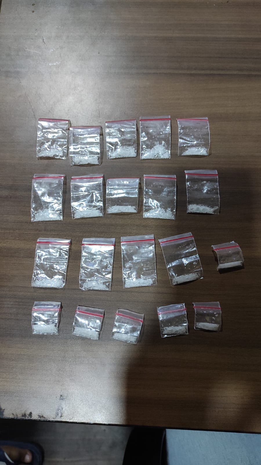 Dalam penggeledahan, kata Kapolres, petugas tidak menemukan barang bukti pada tubuh tersangka. Penggeledahan kemudian dilanjutkan di rumah tersangka dan ditemukan 20 paket sabu di bawah lemari pakaian.