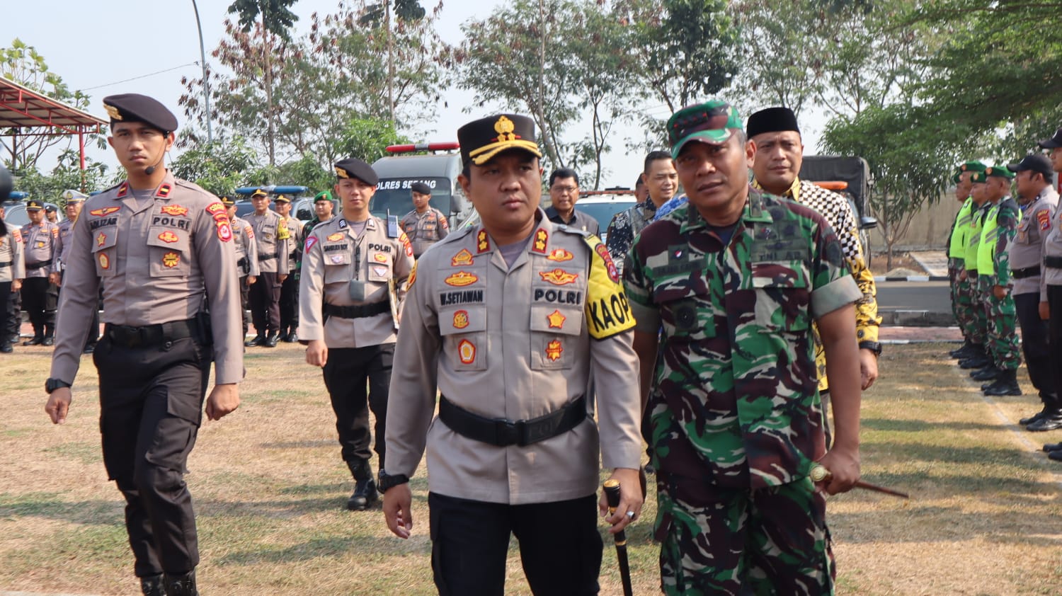Apel gelar pasukan dipimpin Kapolres Serang AKBP Wiwin Setiawan serta dihadiri Dandim 0602 Serang, pimpinan Forkompinda Kabupaten Serang, Ketua KPU dan Bawaslu Kabupaten Serang, sejumlah OPD Pemkab Serang, Kepala PLN Kabupaten Serang serta PJU dan Kapolsek jajaran Polres Serang.