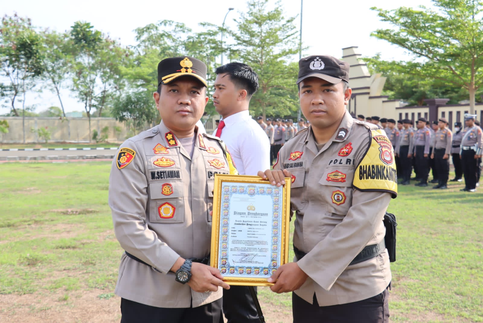 Penghargaan diserahkan Kapolres Serang AKBP Wiwin Setiawan dalam apel di halaman Mapolres Serang, Senin (20/11/2023).