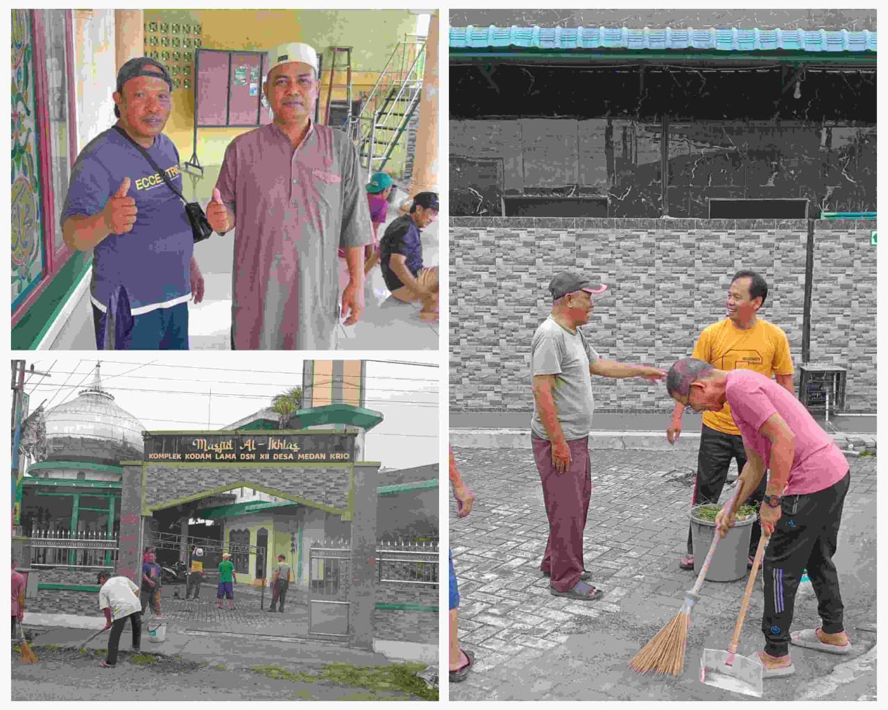 Pantauan di lokasi, warga yang gotong royong tampak sibuk membersihkan halaman masjid, bagian dalamnya, dan halaman serta area sekitar drainase. Sampah-sampah yang terkumpul kemudian dibakar, guna menjaga kelestarian dan kebersihan lingkungan sekitar masjid.