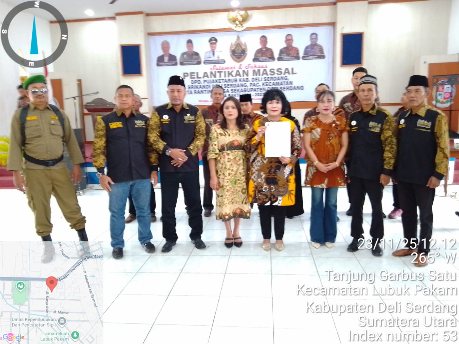 Deli Serdang, Suara-Rakyat.id Ketua Umum DPP Paguyuban Keluarga Besar Jawa Keturunan Nusantara Bersatu (PUJAKETARUB) Nasional menghadiri Pelantikan Massal Dewan Pengurus Daerah (DPD) PUJAKETARUB Kabupaten Deli Serdang, Srikandi, Serta ranting, dengan masa bakti 2024-2027 di Gedung Serba Guna Kantor Bupati Deli Serdang, pada Minggu.(23/11/25)